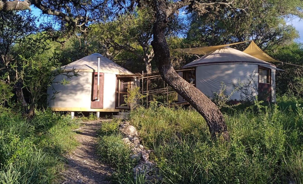 Un terreno tan especial con dos domos y una casita de ladrillo con techo de madera y paja, rodeado de un bosque autóctono precioso, con un algarrobo de 500 años,quebracho blanco y espinillos añejos.