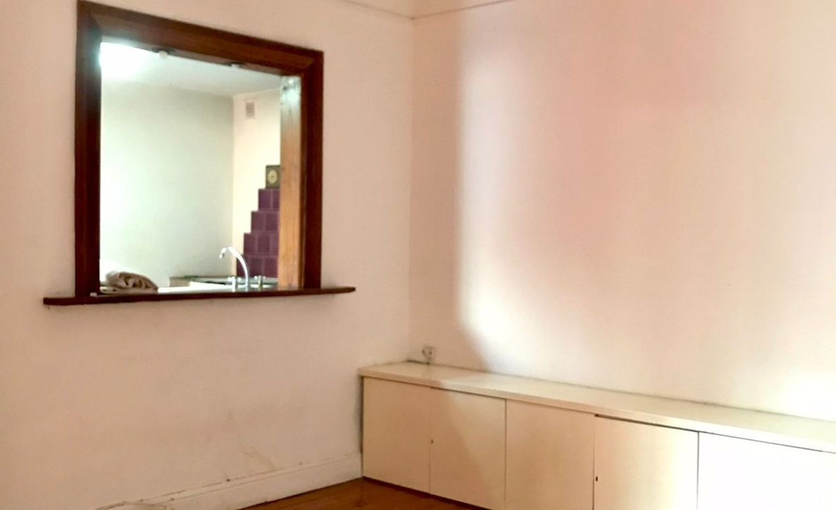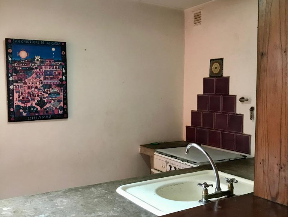 pisos de madera, baño con bañadera, un living que se conecta con la cocina y una cocina chiquita y amorosa